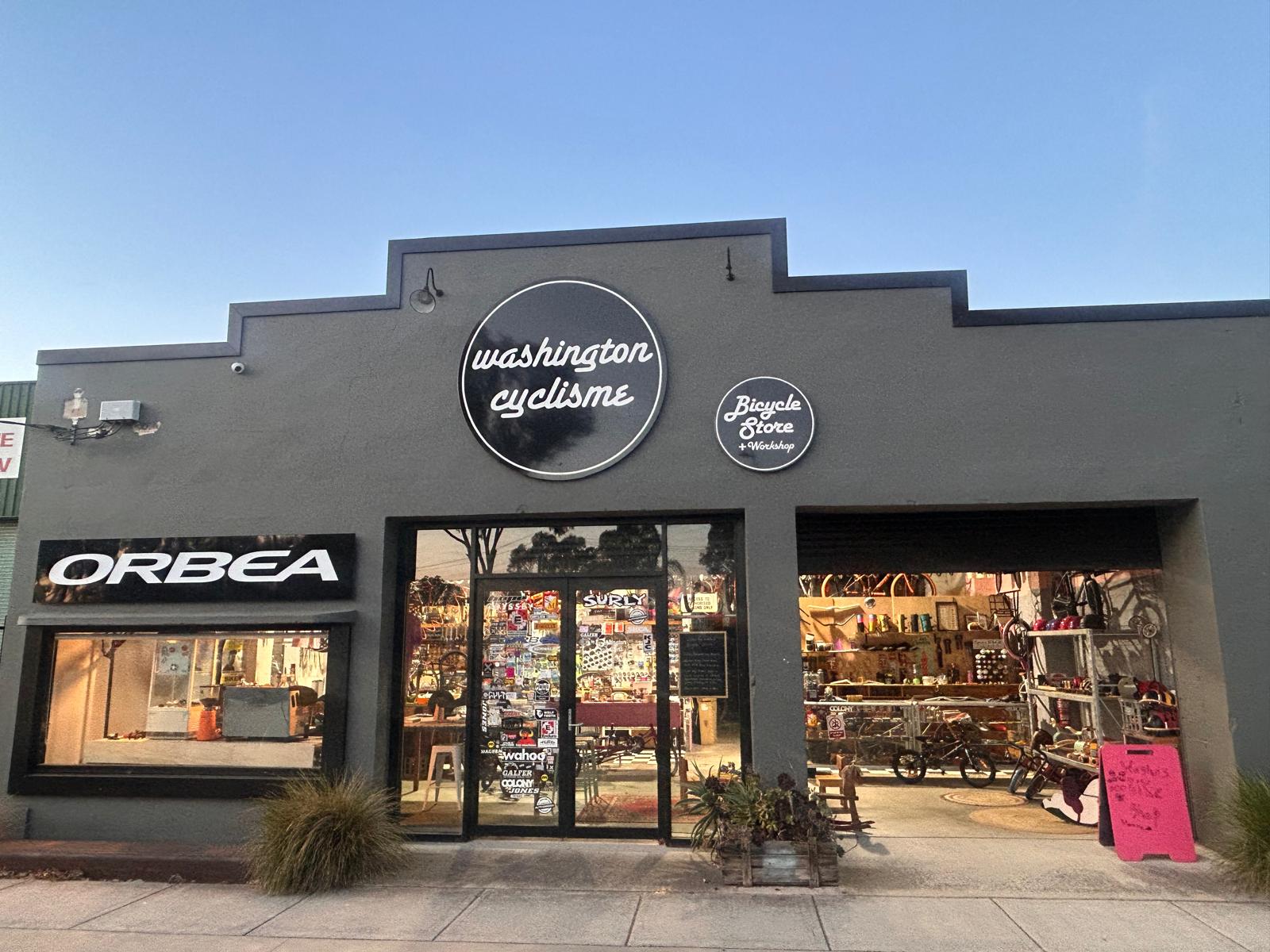 We’re a small local business. The bike shop that the kids grew up in. Maeve helps sweep the floor and Ned helps put stock away on the shelf. Washo puts the bins out.